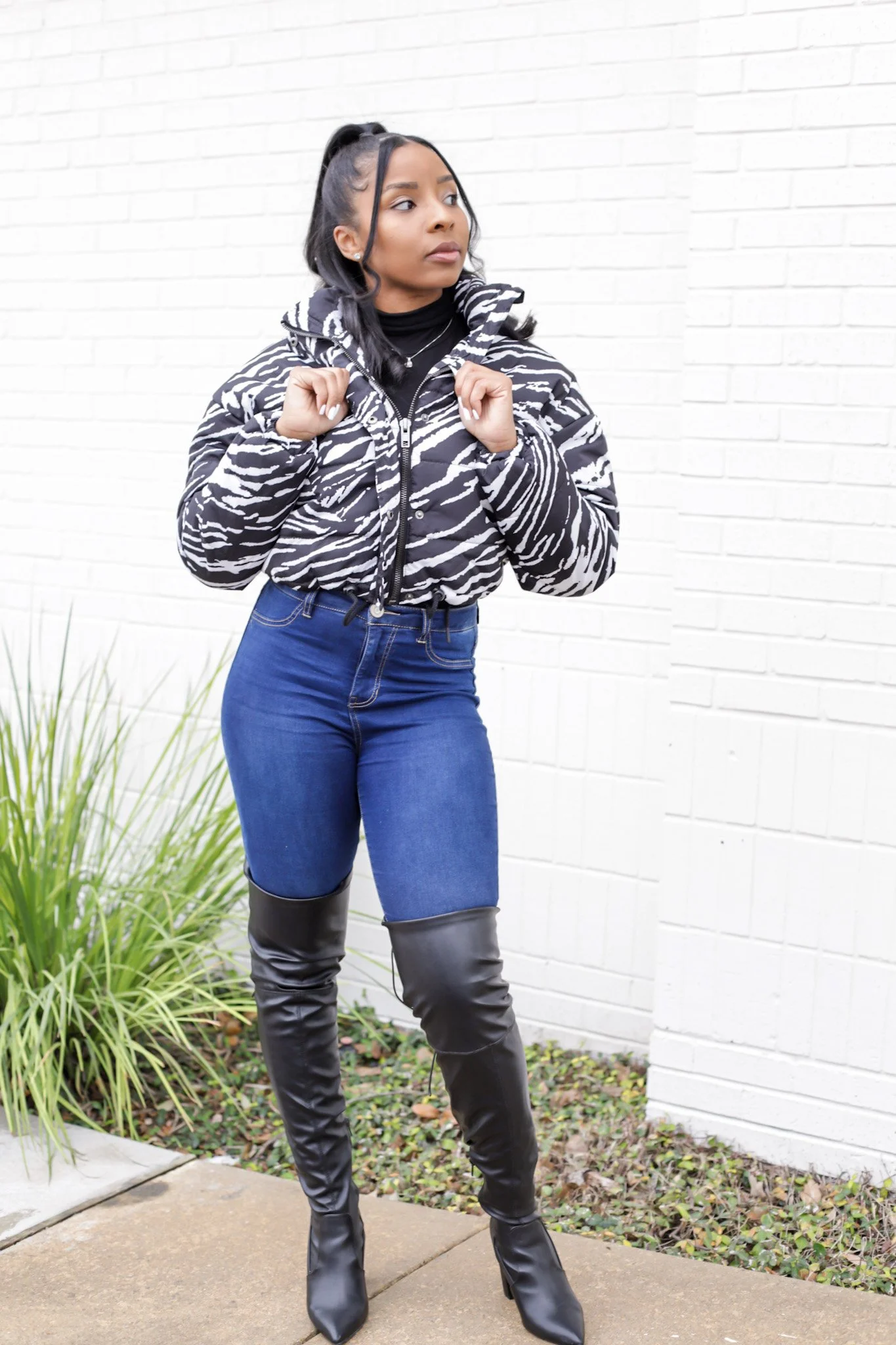 Want a puffer jacket that’s ideal for a day-to-night look? This zebra print puffer is a must check out then. It’s cropped to accentuate your waist and it comes with drawstrings to adjust to fit your waist. Not to mention, the fabric pattern will definitely help you stand out in a crowd.